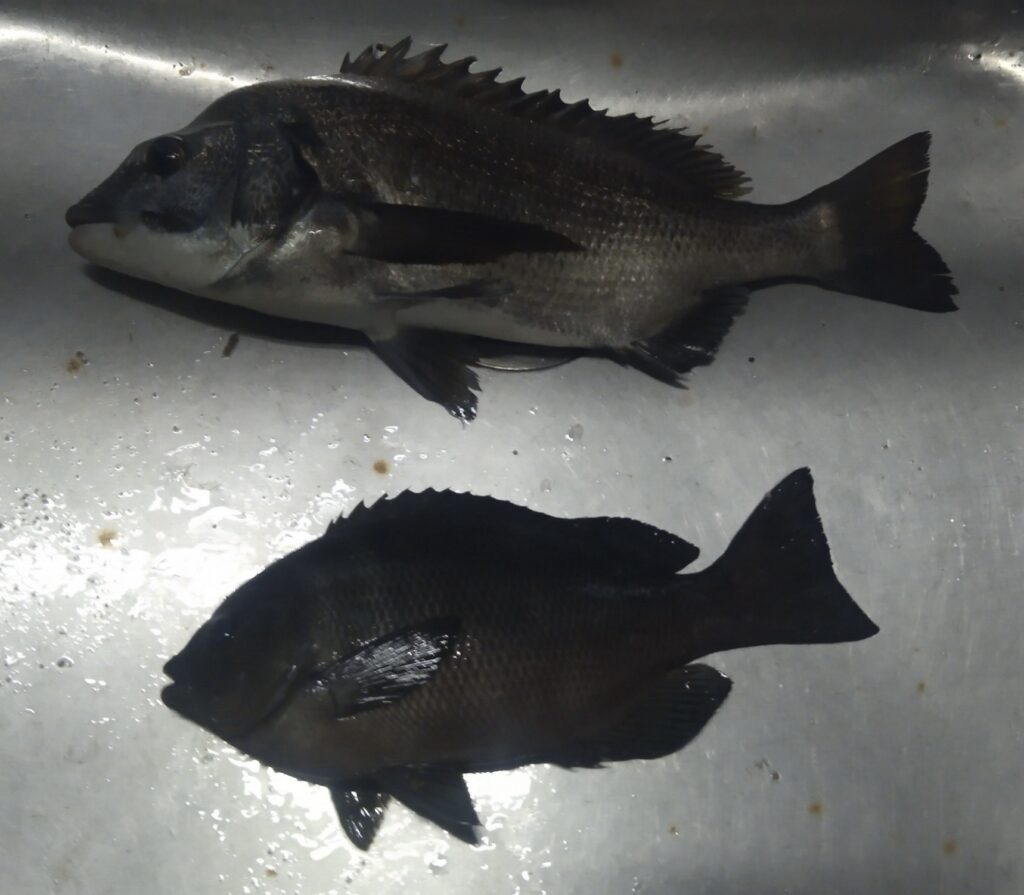 午前中には風が強まり、エサ取りが活発な中でクロダイ9尾と5尾の釣果!