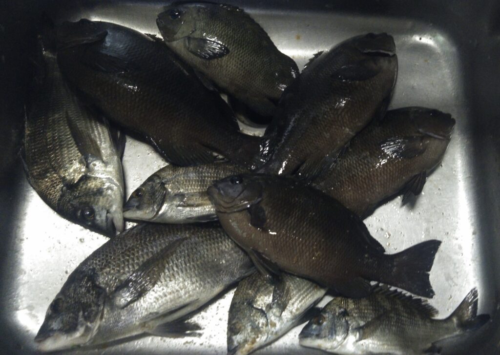 貯木場、エサ取りが多い中でクロダイ多数釣れる(^^)