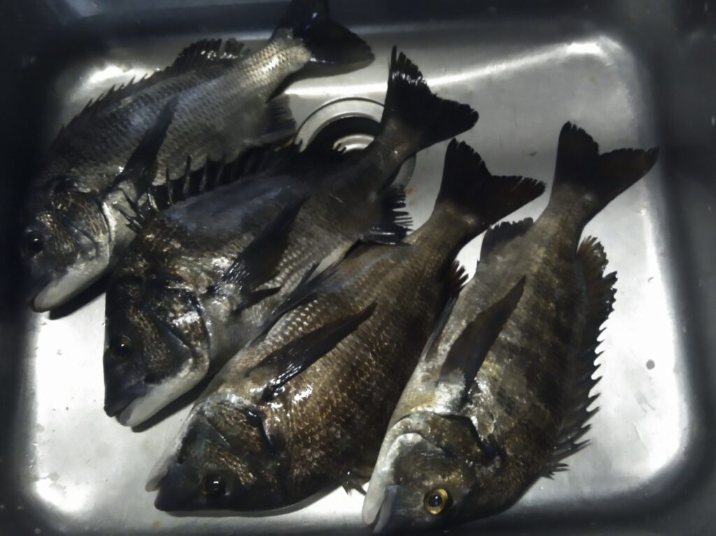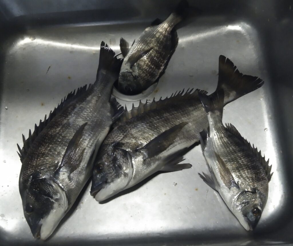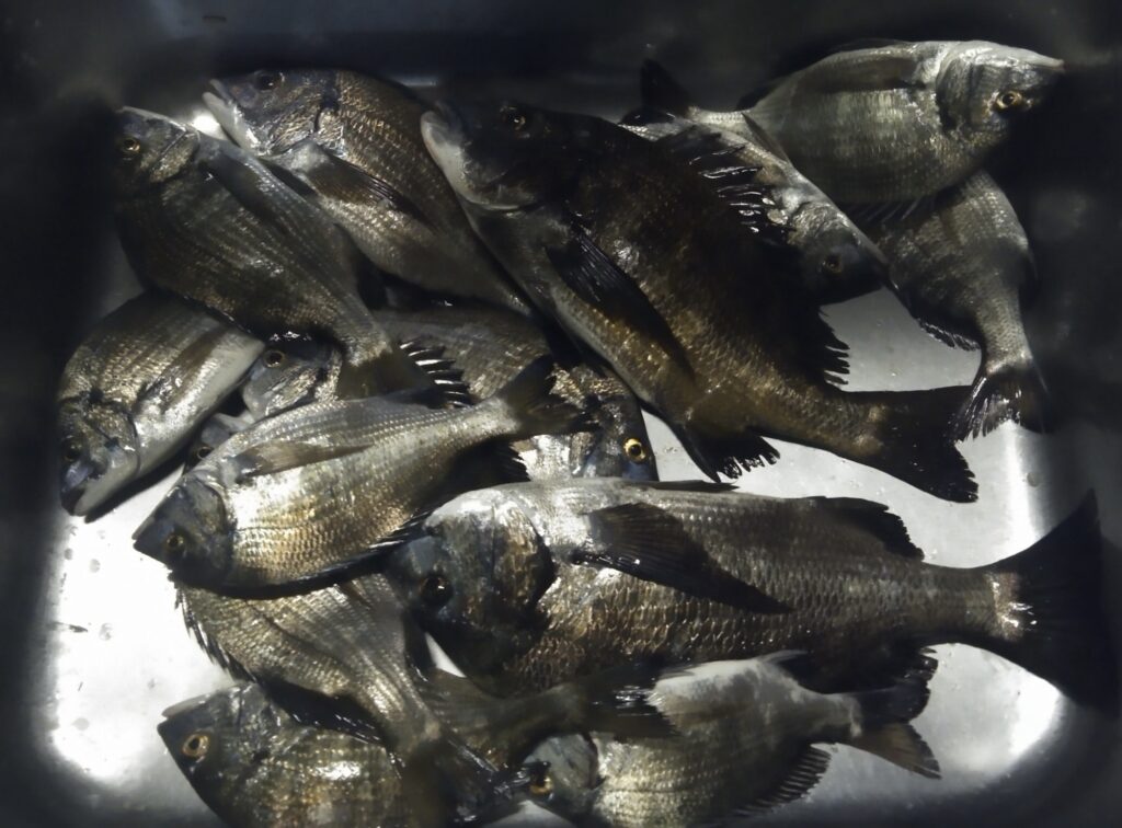 各所でクロダイ、40㎝級の大物も釣れました❗️