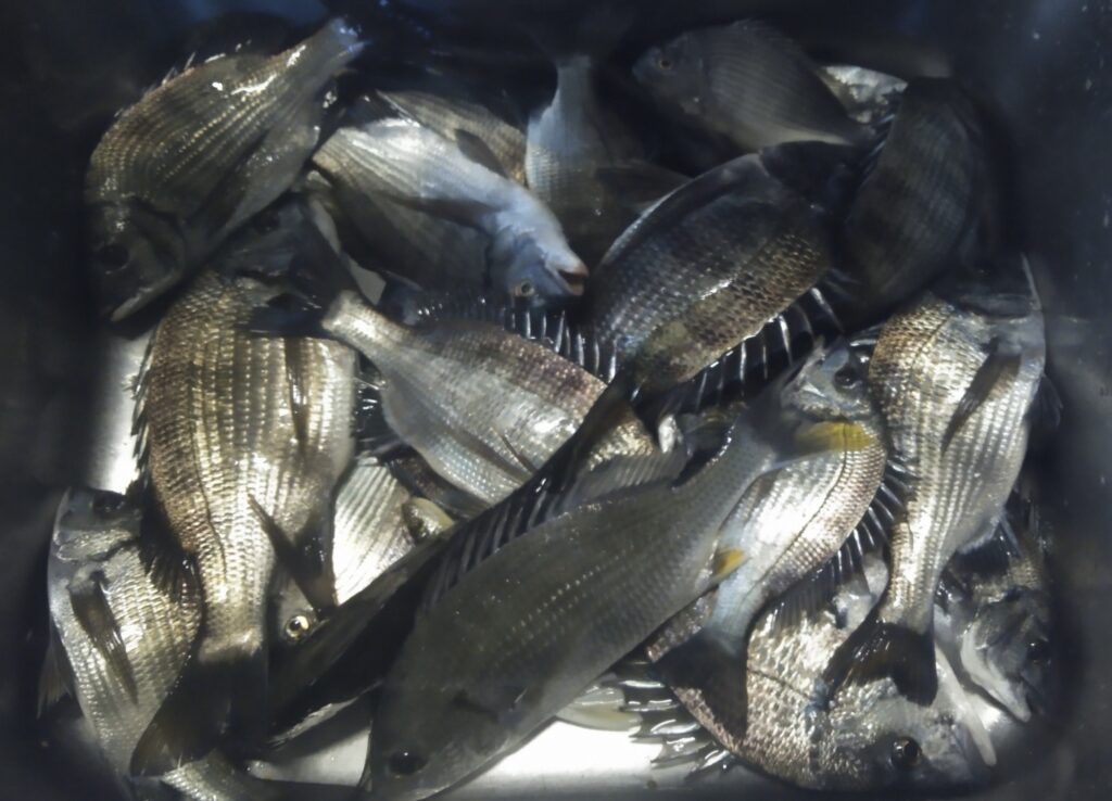 浅場で珍しくカイズクラスの爆釣で楽々二桁釣果達成‼️