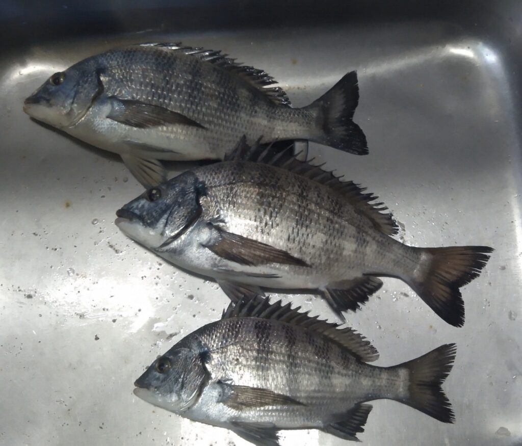 午前中はアタリが渋く、昼過ぎからクロダイが釣れるようになりました。