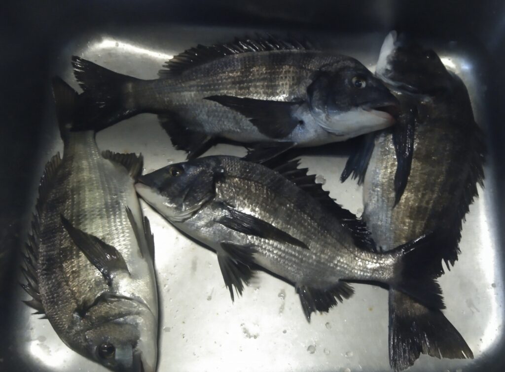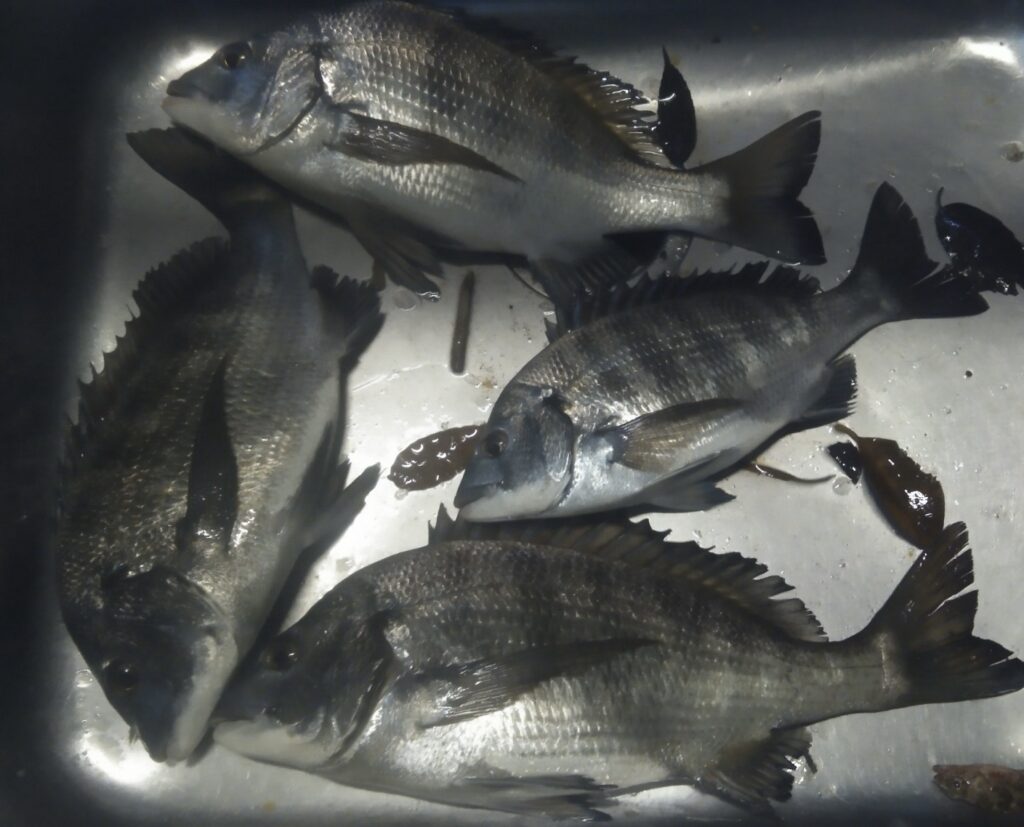 昨日と同様、午前中はアタリが少なく午後から40㎝級の大物クロダイが続々と各所で釣れましたよ‼️