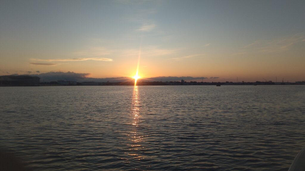 今朝もお天気良好、海上もべた凪(o^^o)