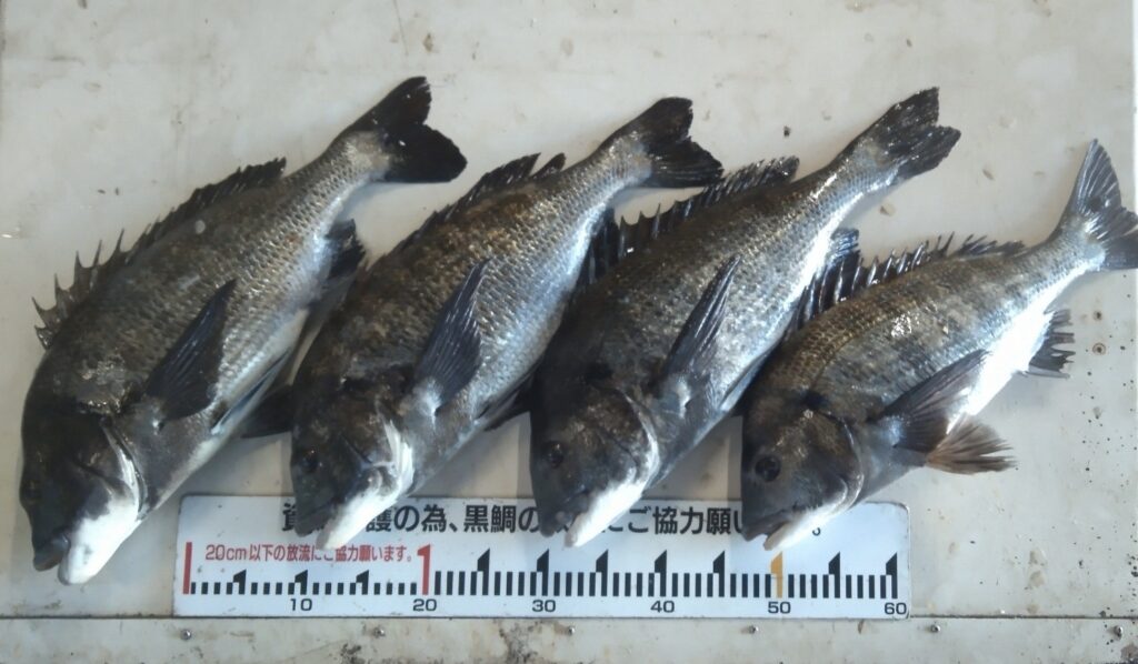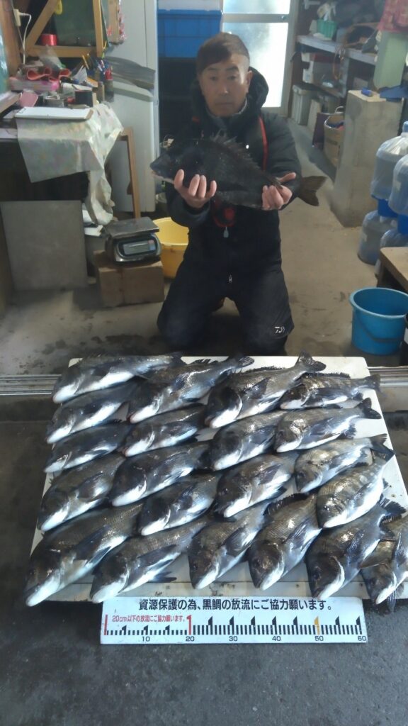 クロダイ26尾とキビレ4尾の釣果で15尾が40㎝オーバー、”年無し”も4尾含む‼️