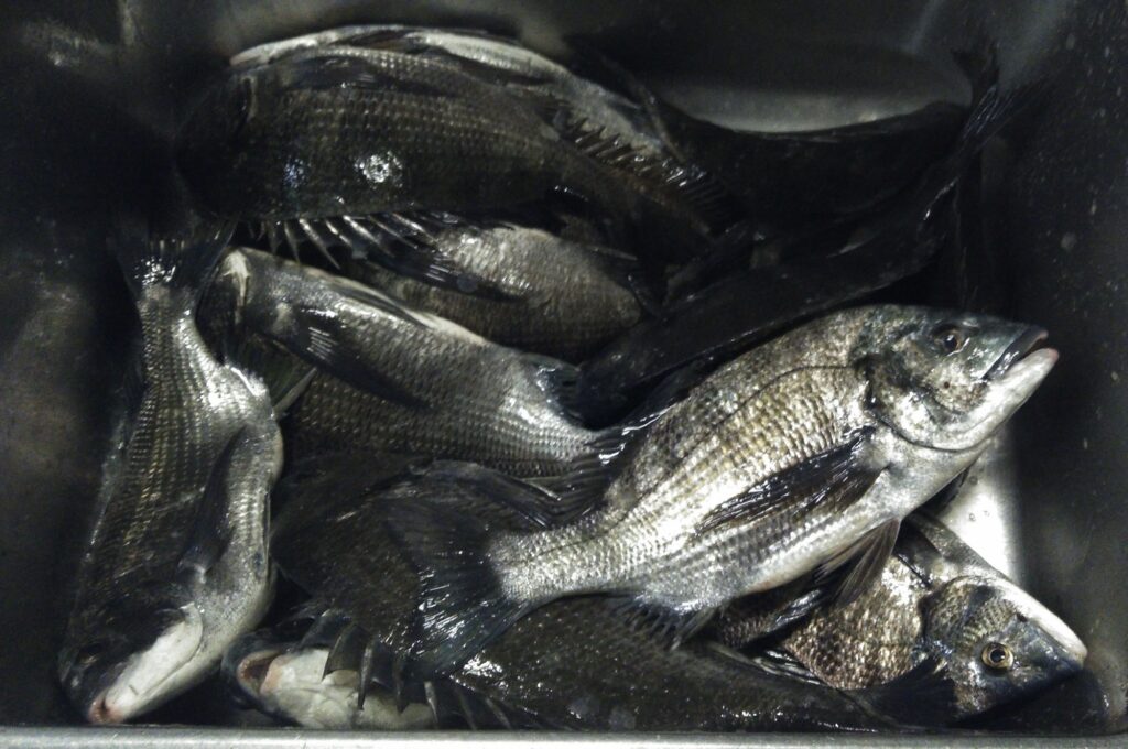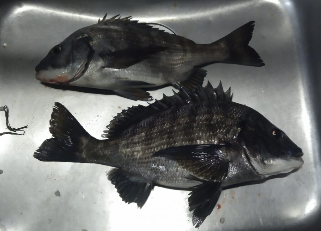 折戸では昨日に引き続きクロダイが午前中から多数釣れて、浅場はその時点で単発。